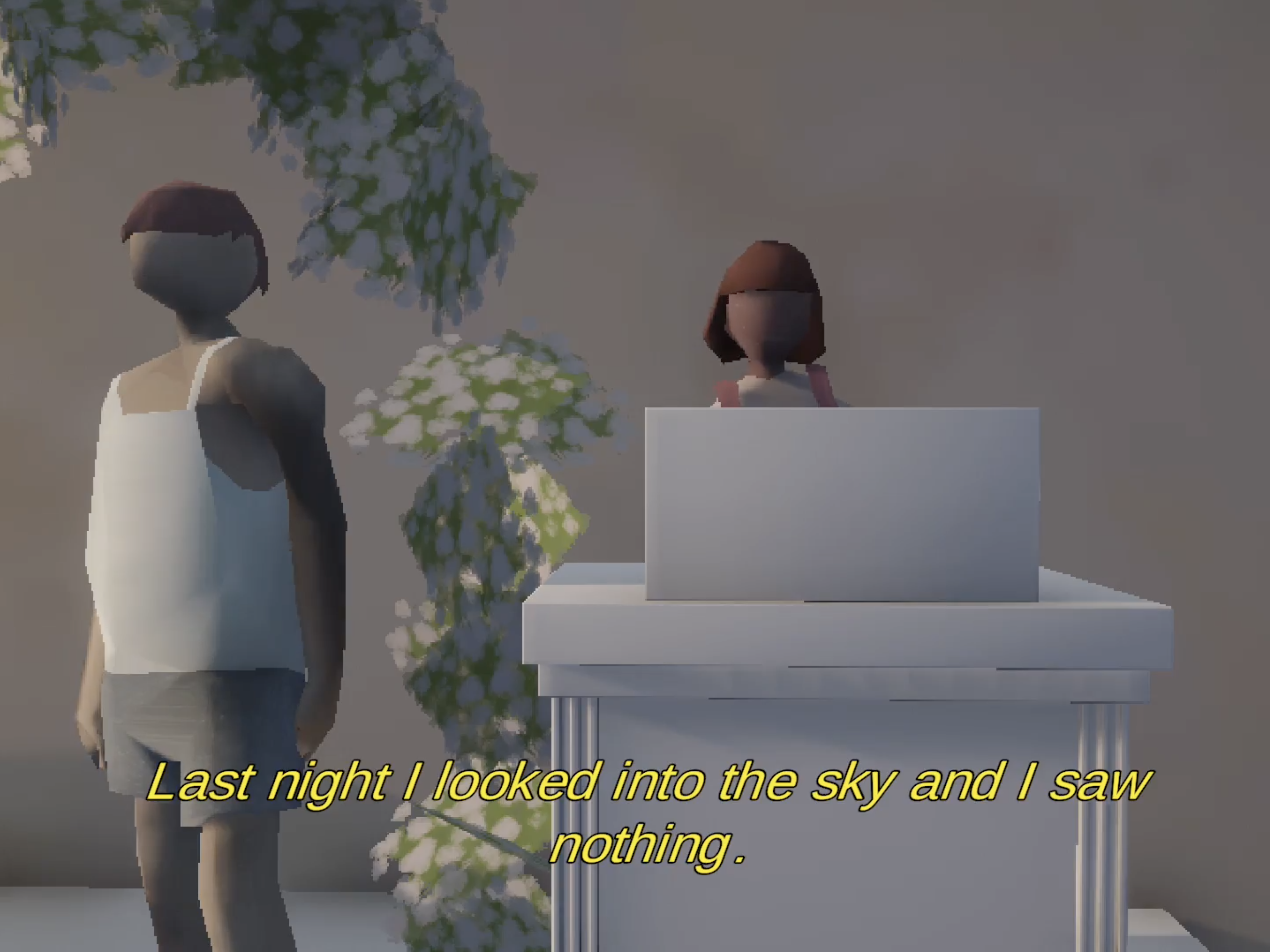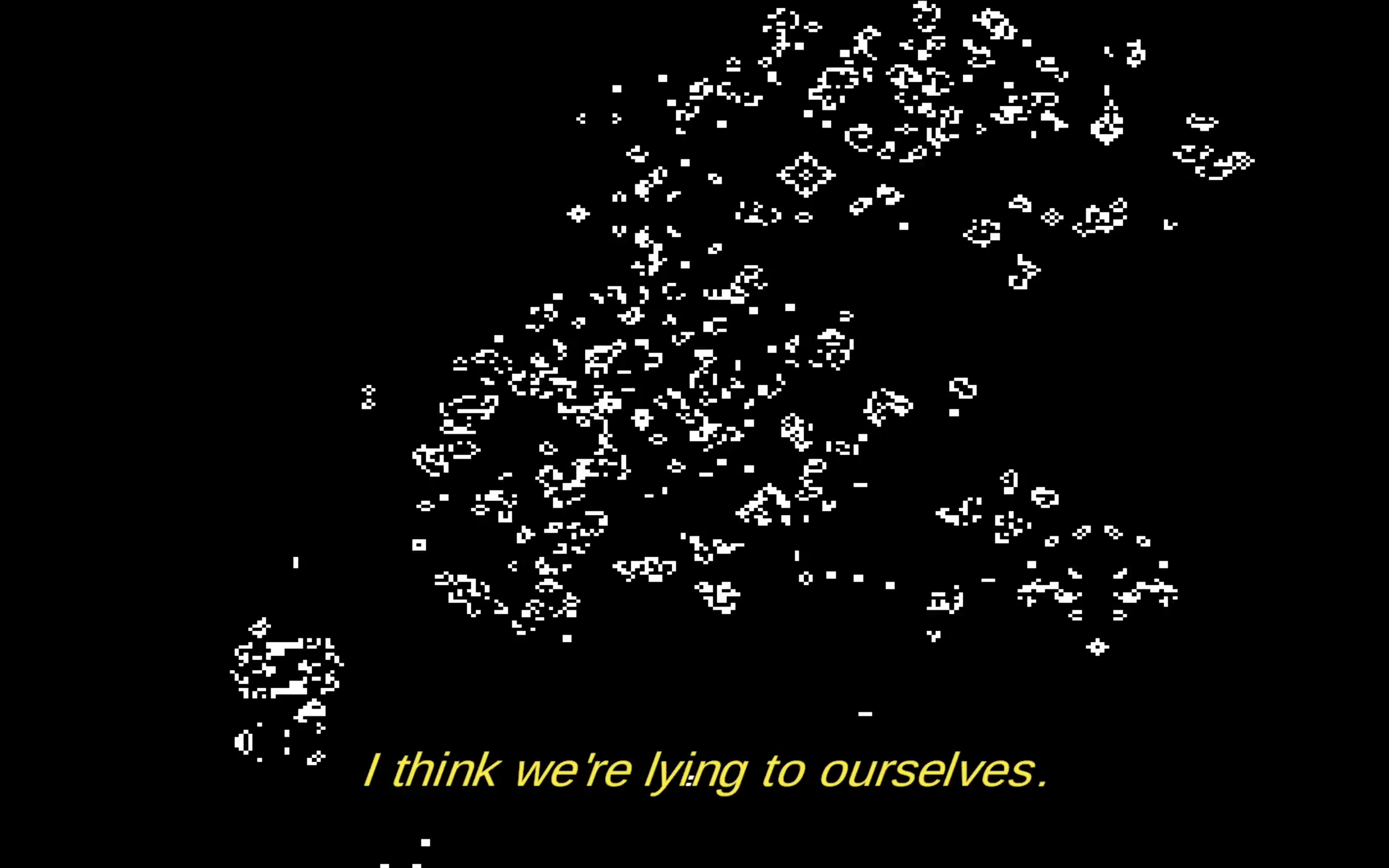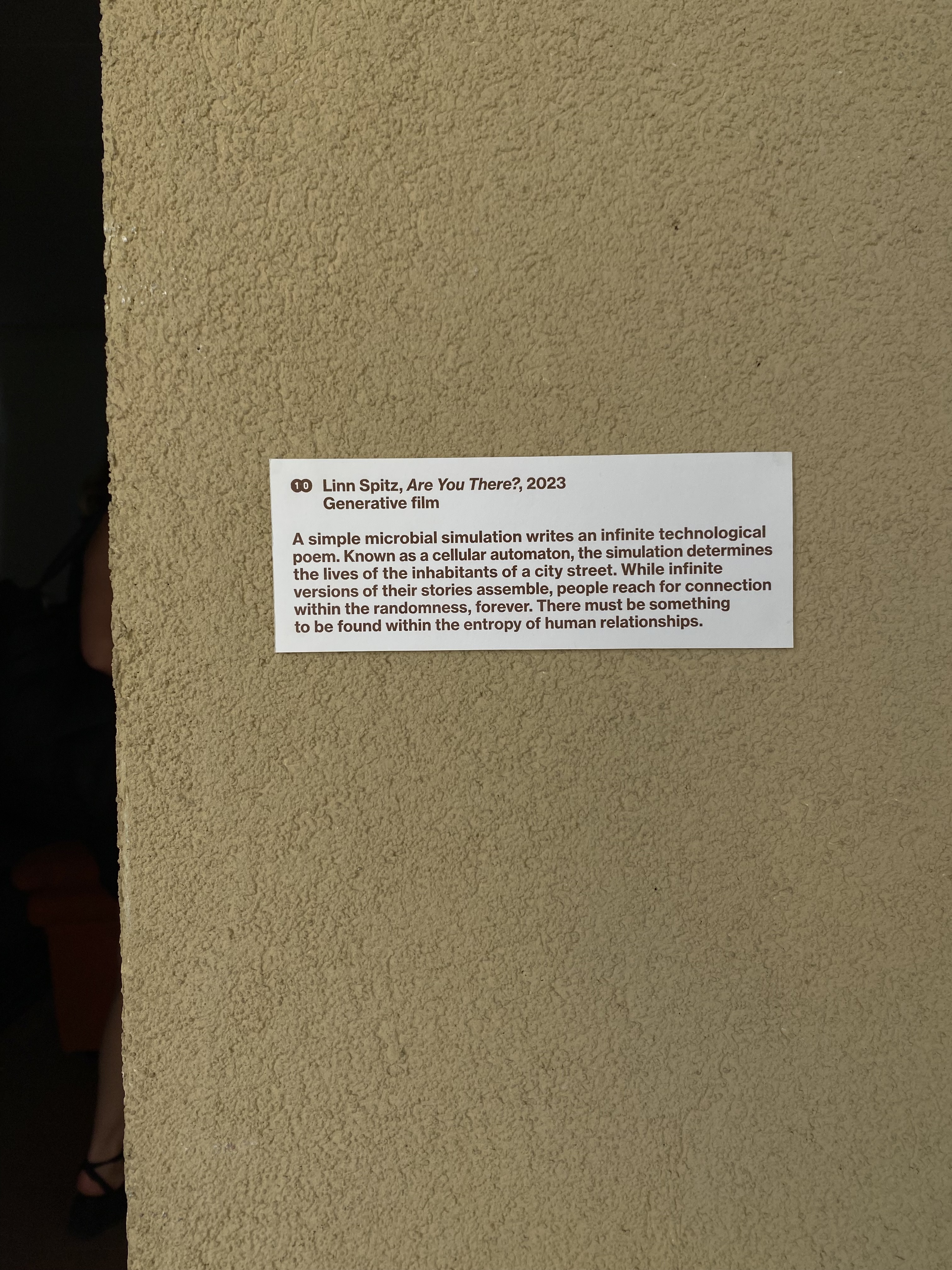 Are you there? is an infinite, generative film. Set in a pedestrian city street, characters lives randomly generated. Their conversations are never quite the same, making the film both never-ending and fleeting, as a moment that is missed cannot be reproduced. An AI language model emulates phrases provided by the author. The inhabitants of the city are worried about work, cooking dinner and the arbitrary nature of their lives. The long for closeness and do not quite know how to find it. While infinite versions of their stories assemble, people reach for connection within the randomness, forever. There must be something to be found within the entropy of human relationships.